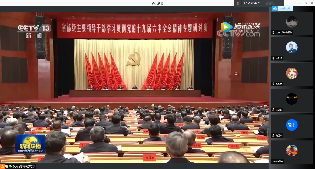2022年1月14日上午15:00,无限动漫 领航先锋党支部组织支部成员线上观看《省部级主要领导干部学习贯彻十九届六中全会精神专题研讨班》视频。支部全体党员参加了此次活动,本次活动由支部副书记李泽同志主持。