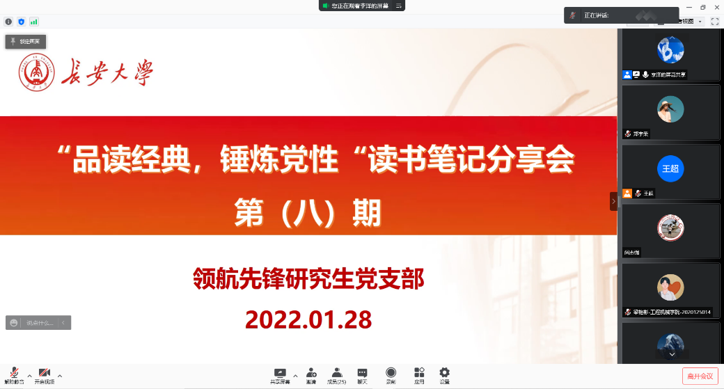 领航先锋党支部组织支部成员线上开展了第八期读书笔记分享活动,本次活动由支部成员武迪同志和耿明月同志做读书笔记分享。支部全体党员参加了此次活动。