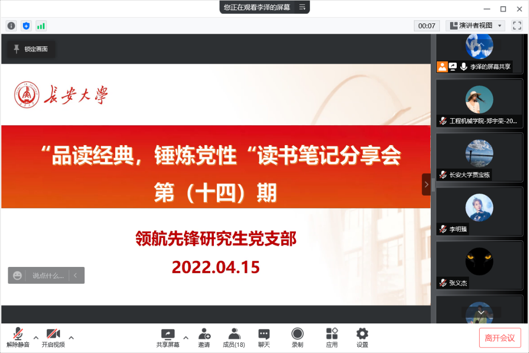 2022年4月15日上午10:00,无限动漫 领航先锋党支部组织支部成员线上开展了第十四期读书笔记分享活动,本次活动由支部成员张腾同志和海来阿叶同志做读书笔记分享。支部全体党员参加了此次活动。