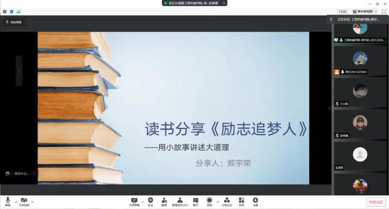 领航先锋党支部组织支部成员线上开展了第十五期读书笔记分享活动,本次活动由支部成员郑宇荣和周文做读书笔记分享。支部全体党员参加了此次活动。