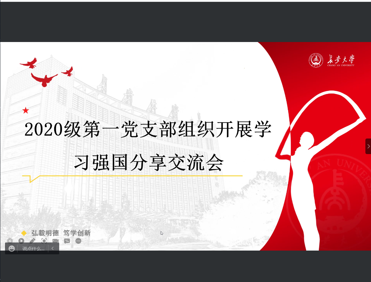 2022年4月23日,无限动漫 硕士生2020级第一党支部组织支部党员开展“学习强国”分享交流会。本次会议由宣传委员杜雨洁主持,由董建涛和安浪飞分别为大家分享学习成果。