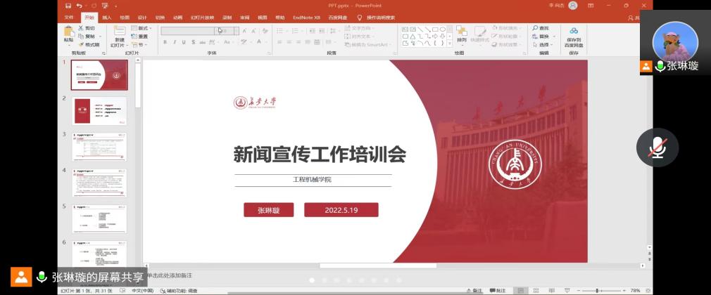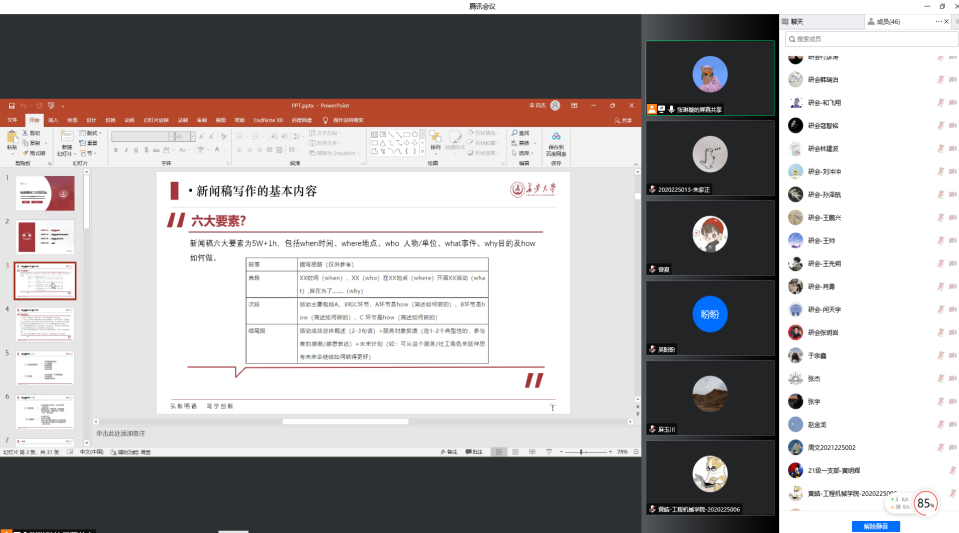 为进一步提高学院研究生新闻宣传队伍业务能力和工作水平,加强和改进新闻宣传质量,2022年5月19日,无限动漫 线上召开了研究生新闻宣传工作培训会,研究生各党支部支委、全体研会成员参加了此次会议,本次培训由研究生辅导员张琳璇主讲。