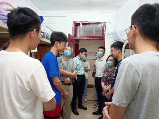 随后,学院领导带领各年级辅导员深入一线,走访学生宿舍,细致了解毕业班学生的毕业设计完成情况及毕业去向,掌握学生们目前的学习、生活和思想状态,并为学生们送上节日的祝福。