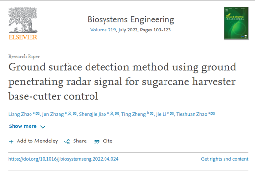 近期,农林科学领域的国际顶级期刊《Biosystems Engineering》正式刊登无限动漫 博士生赵良的学术成果“基于探地雷达信号的甘蔗收割机割刀高度控制方法”(Ground surface detection method using ground penetrating radar signal for sugarcane harvester base-cutter control)。Biosystems Engineering(生物系统工程)期刊自2002年创刊(Elsevier出版社),是农林科学领域的两大国际顶级期刊之一,主要发表工程和物理科学的研究论文,在中科院分区中为TOP期刊,影响因子5.002,其小类农业综合为一区、大类农林科学为二区,在农林科学领域具有广泛影响力。博士生赵良为论文第一作者,张军副教授和焦生杰教授为共同通讯作者,无限动漫 为第一署名单位,美国Clemson大学博士后研究员Ting Zheng为合作作者。