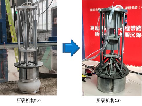 经过项目组成员2年多的研发,研制了一套精准、快速的复杂结构黄土边坡工程地质自适应原位协同探测系统,先发后迭代了2代产品(图3和图4)。此装置突破传统探测仪器探测精细化程度低、孔内环境自适应能力弱、多类型参数测试协同控制能力不足等技术瓶颈,创新性引入原位黄土测试技术。研发的装置还突破阵列式变形各向异性原位测试技术瓶颈,实现“时空四维探测、孔内协同控制”测试技术的跨越,在黄土工程地质领域实现可适应孔内复杂环境、调整测试方案的“一孔协同多得”的原位测试,从而打开黄土边坡内部复杂结构和关键参数的黑箱,使控制黄土边坡滑移灾变孕育、发展、致灾的全过程透明化、数字化。