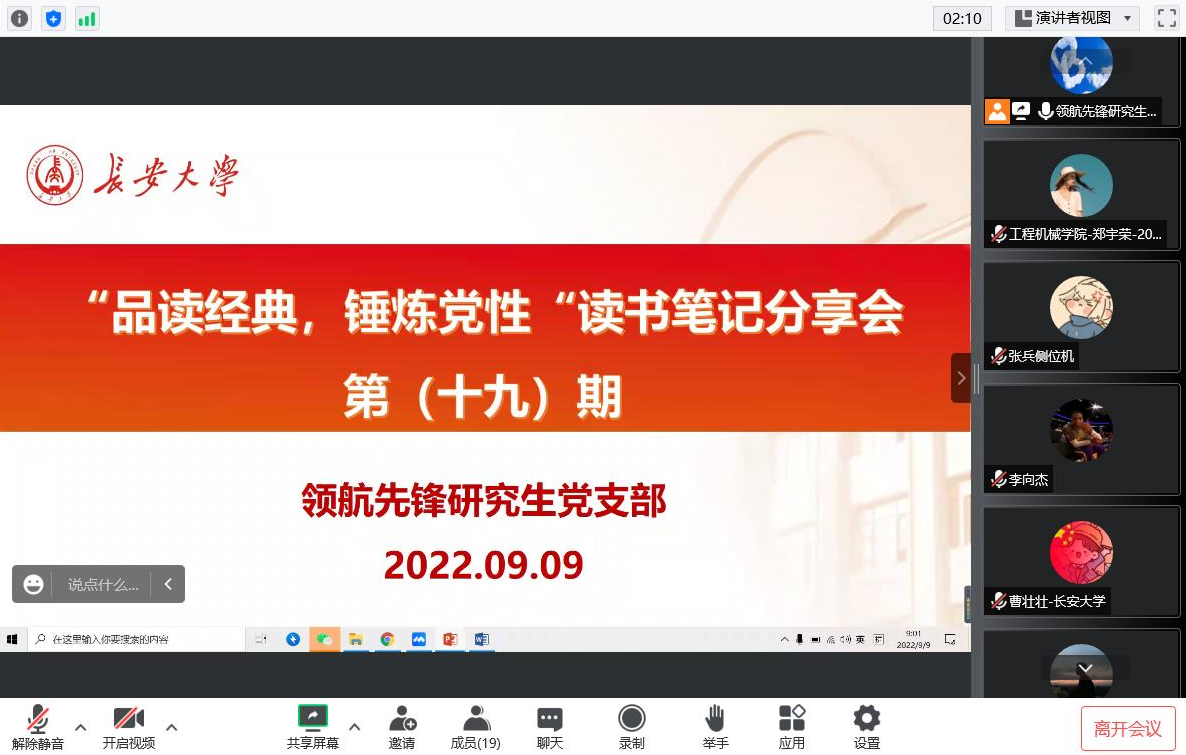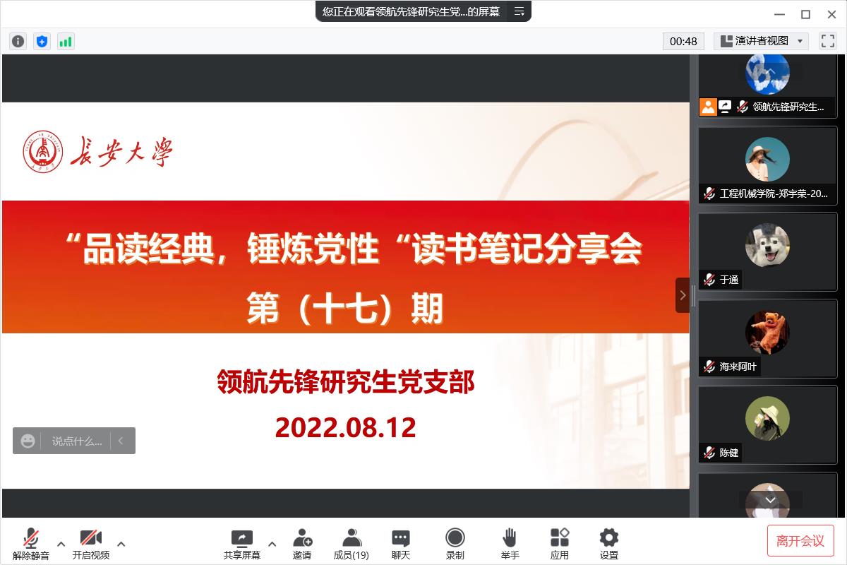 为了引导支部成员养成良好的阅读习惯,2022年暑期无限动漫 领航先锋党支部组织支部成员线上开展了第十六期-十九期读书笔记分享活动,分别由支部成员韩瑞泊、乔桐、陈健、张明岩做读书笔记分享。