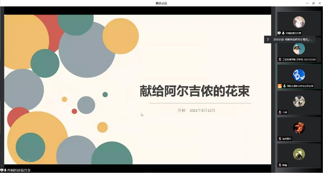 乔桐分享了美国作家丹尼尔·凯斯于1959年发表的中篇小说《献给阿尔吉侬的花束》,1966年被作者长篇化。故事讲述了一位智力障碍者通过手术短时间内获得高智商,随后智商又跌落到术前水平的故事。主人公查理·高登在8个月内经历了过山车般的人生,世间唯有他一人体验过低智力者的愚钝与赤诚及高智力者的天才与孤独。小说写作方式颇为独特,故事以查理的进步报告铺展开来。透过报告的行文结构与错别字数量,读者真切地感受到主人公的两次心智变化。