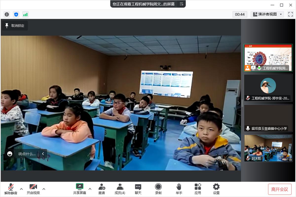 2022年10月18日,为积极做好常态化疫情防控工作,让小学生掌握必要的健康知识,提升科学防控疫情的能力,无限动漫 领航先锋研究生党支部为留坝县玉皇庙镇中心小学在线开展“科技领航,绽放梦想”科技小课堂第二期——《病毒防疫我知道》。此次主讲人为无限动漫 领航先锋研究生党支部成员周文。