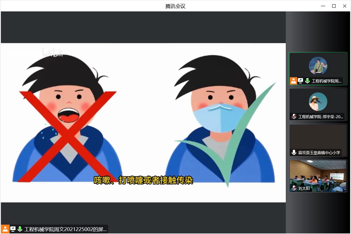 在线课堂上,同学们听得津津有味,周文从病毒的一些共同特点讲起,介绍了秋冬交替季节少年儿童易患的一些常见病毒,如艾滋病、伤风、流感、水痘、天花、乙肝病毒、甲肝病毒、新冠肺炎等。随后,他结合动画视频为同学们详细讲解了什么新冠病毒、新冠病毒的传播途径、新冠病毒的流行特征和临床表现、如何正确佩戴口燥、日常防护措施等知识。生动的视频,让孩子们进一步理解科学防疫的方法和核酸检测、疫苗接种的重要性。