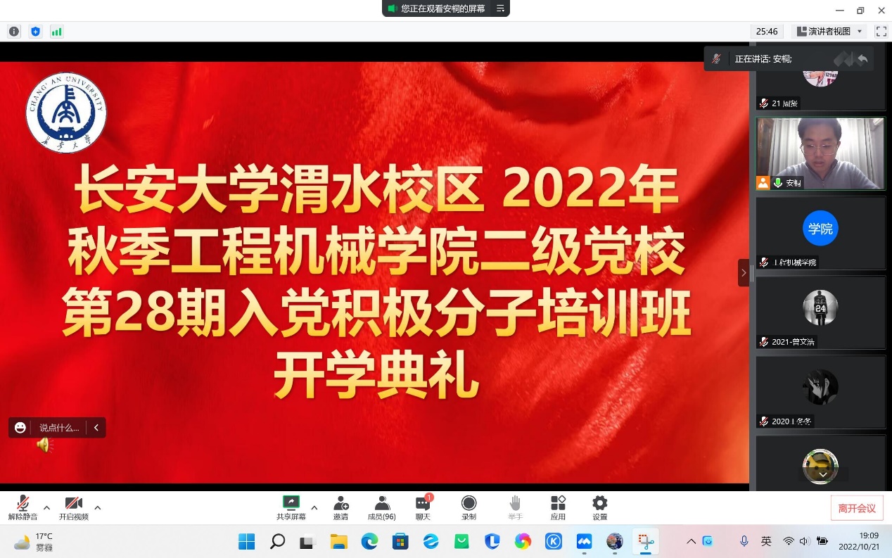 10月21日晚7点,无限动漫 二级党校秋季学期入党积极分子培训班开学典礼在线上举行,无限动漫 党校副校长徐苑芝、无限动漫 党委副书记雷剑出席开学典礼,本期入党积极分子全员参加。本次典礼由学院二级党校入党积极分子培训班班主任安桐主持。