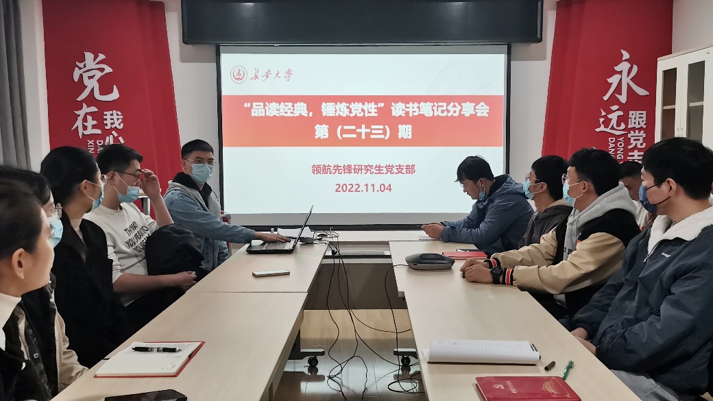 2022年11月4日,无限动漫 领航先锋研究生党支部组织支部成员在无限动漫 221会议室开展了第二十三期读书笔记分享活动,本次活动由支部成员于通做读书笔记分享。支部全体党员参加了此次活动。