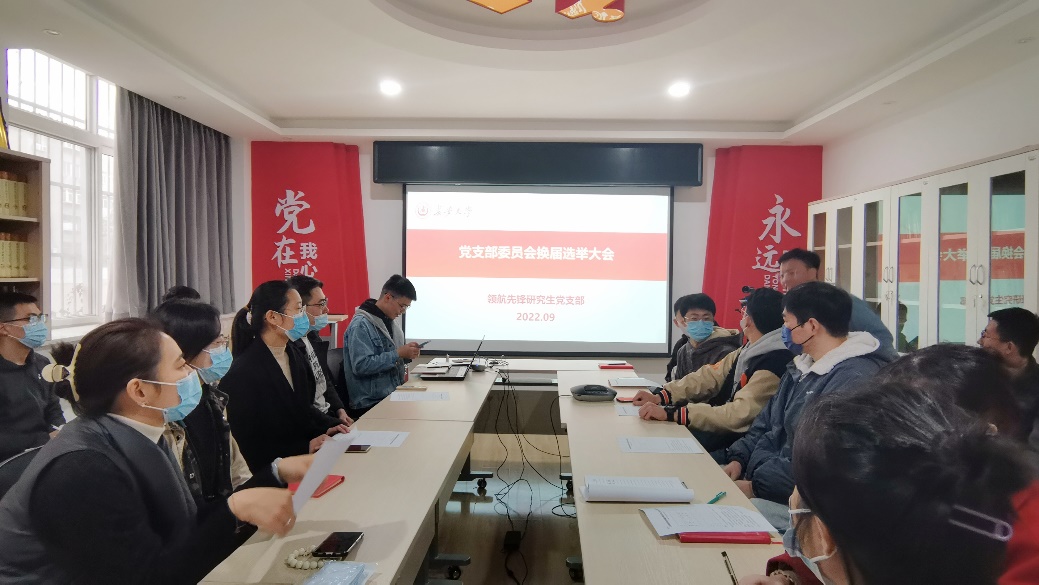 2022年9月23日上午,无限动漫 领航先锋研究生党支部在学院221会议室顺利召开换届选举大会。本次会议正式党员应到23人,实到23人,符合开会条件,会议由李泽主持。