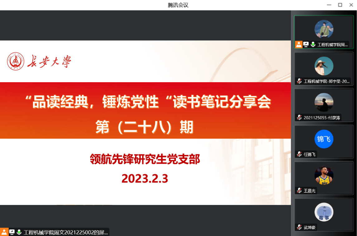 2023年2月3日,无限动漫 领航先锋研究生党支部组织支部成员线上开展了第二十八期读书笔记分享活动,本次活动由支部成员李向杰和李明臻做读书笔记分享。