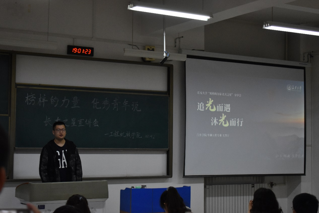 此次宣讲会第一位分享的同学是长大之星、求真之星获得者——来自2019级汽车学院的王涔宇,他本人是以文化课与推免成绩双第一的成绩推免到同济大学攻读博士学位。王涔宇以自己的大学四年的亲身经历,主要给同学们介绍了关于学业规划、科研竞赛、志愿与文化实践活动还有关于推免资格这四方面的内容。在王涔宇的整个宣讲过程中,始终强调学习成绩的重要性,表明一个好的绩点是未来发展的基础。最后王涔宇也分享了自己的一些心得并鼓励学弟学妹们要更加勤奋努力,突破自己。