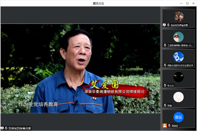 2023年4月28日,无限动漫 领航先锋研究生党支部组织支部成员线上观看共产党员网推出的微视频《榜样7》|艾爱国:焊接领域的“大国工匠”,响当当的“大师傅”。支部全体党员参加了此次活动,本次活动由支部副书记周文主持。