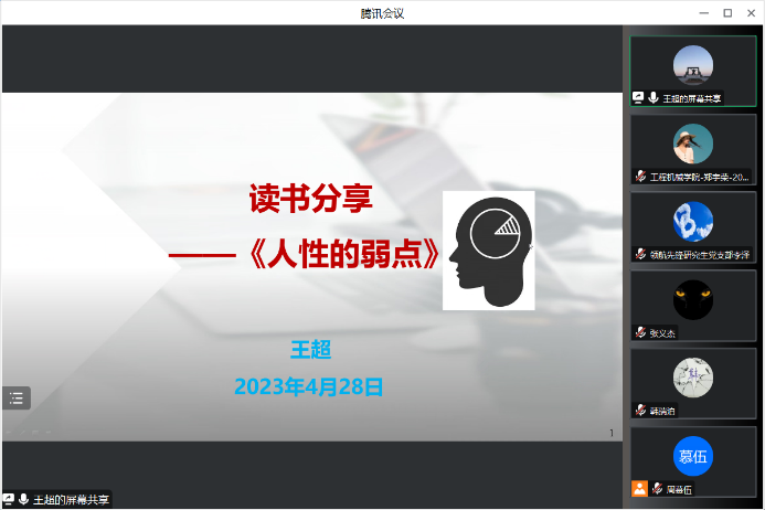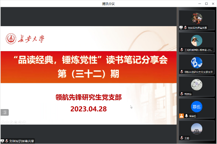 2023年4月28日,无限动漫 领航先锋研究生党支部组织支部成员线上开展了第三十二期读书笔记分享活动,本次活动由支部成员韩瑞泊和王超做读书笔记分享。