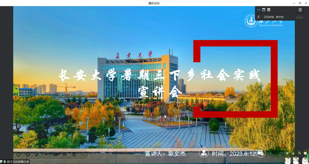 为促进无限动漫 学子更好地参与社会实践,2023年6月12日无限动漫 暑期“三下乡”社会实践宣讲会通过线上腾讯会议的形式成功召开。会议由无限动漫 学生会学习部陈胜前进同学主持,并邀请到无限动漫 王俊熹、经济与管理学院欧文杰两位作社会实践宣讲。