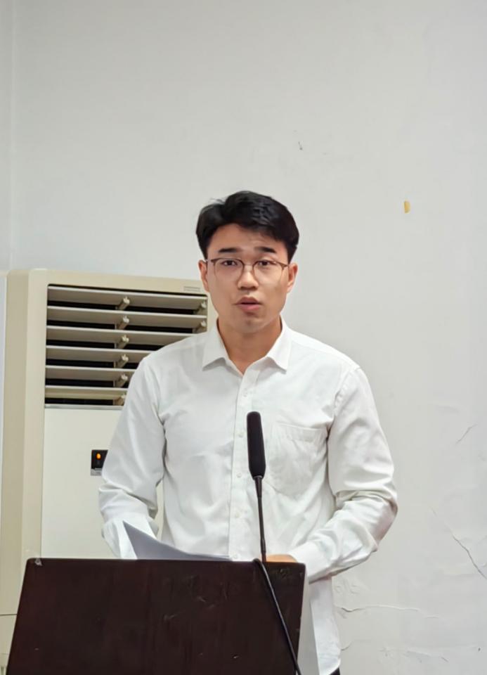 大会第二项,赵尉尉上台致辞。首先,他向第十二届研究生会全体成员的辛勤付出和努力表示感谢,同时也对第十三届研究生会全体成员的加入表示热烈欢迎。赵尉尉表示,研究生会是学生自我服务和自我管理的重要平台,作为研会成员要从学生中来到学生中去,积极做好学院与学生之间沟通的桥梁。同时,他对新一届的研会成员寄予希望:第一要坚持理想信念,要把理想信念放在核心位置。第二要坚守初心,响应研会宗旨,提升自我,服务同学,想学生之想,急学生之急。第三要响应共青团的号召,做到把工作计划和深化改革推到实处。第四要坚持创新,追求创新要结合自己工作实际创新,不要为了创新而创新。最后要做好传承,研会是一个团队,要树立起竞争合作以及为学生服务的意识。