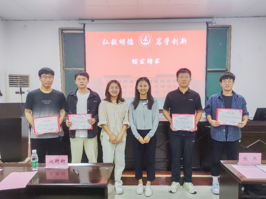 大会第五项,由出席本次会议的老师为第十二届研究生会主席团成员及各部门负责人颁发任职证书。