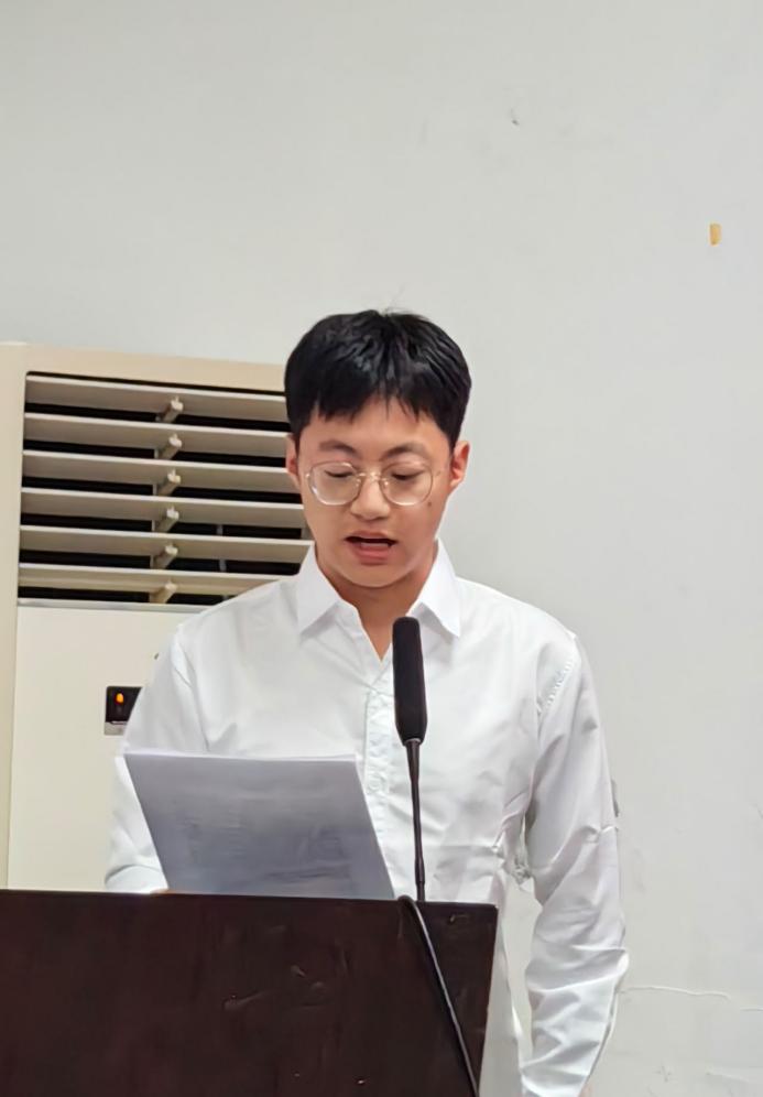 大会第三项,第十二届研究生会执行主席张兵上台发言。首先,他对过去一年工作中老师的悉心指导及研会成员的积极配合表示感谢。随后,他总结了过去一年研会取得的各项荣誉,并强调研会成员需要合理安排时间,同时兼顾工作和学习。张兵表示研会成员要紧密团结在一起,善于在工作中总结经验,深入贯彻党的二十大精神,努力提升自我水平,满足广大同学的需求。最后,他对第十三届研究生会全体成员寄予厚望,希望他们能够脚踏实地,在今后的一年中出色地完成各项工作。