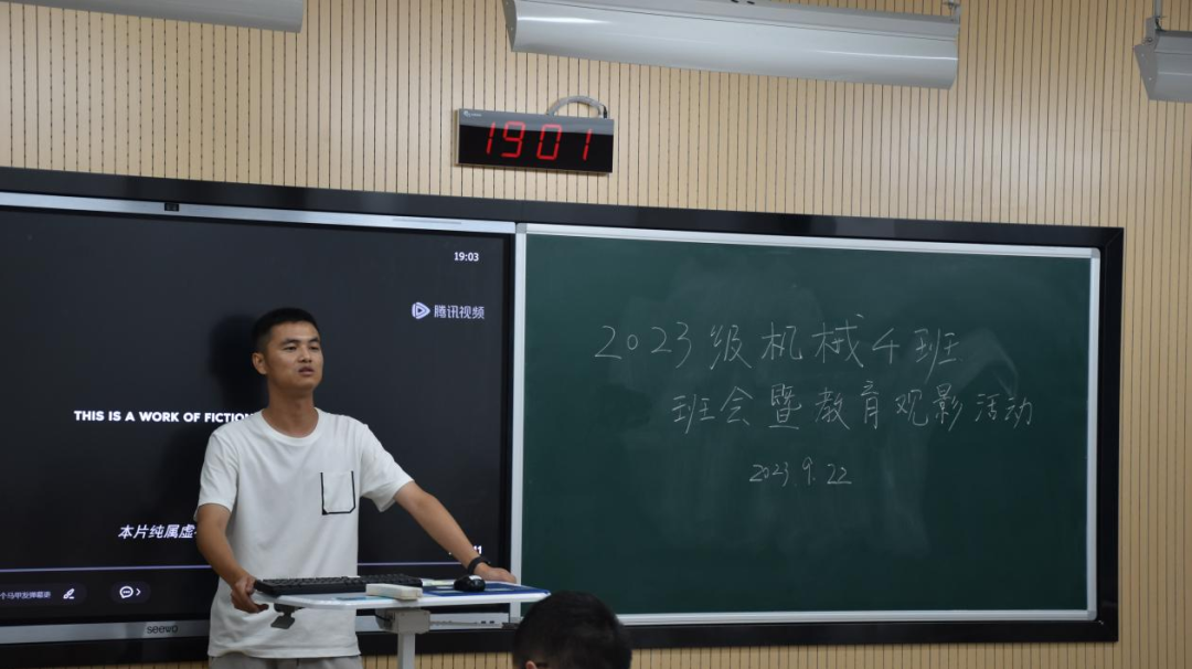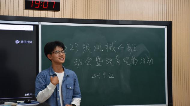 为加强班级凝聚力,明确班级目标,帮助大家更好地规划大学生活,9月22日,无限动漫 2023级机械4班召开了第一次班会暨观影教育活动。本次活动由班长屈云玮、团支书张梓瑞等班委组织举办,2023级辅导员左意老师和全体同学参加。