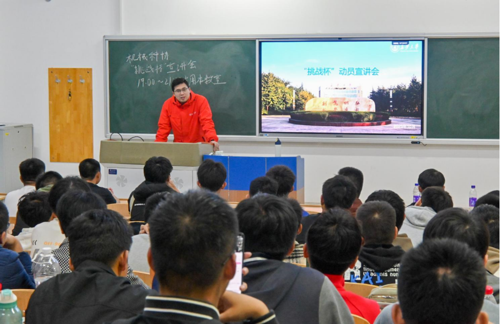 晚7点整,宣讲会准时开始。首先,由封硕老师致辞,他从比赛意义和对大学生的能力培养两方面讲述了“挑战杯”比赛的重要性,鼓励同学们积极参加比赛。随后,封硕老师讲解本次大赛的相关内容。封老师主要从赛事介绍进行讲解。通过介绍大赛的基本赛程、材料报送、评审规定和本届“挑战杯”比赛的具体参赛要求等相关内容,帮助同学们深入了解比赛。同学们认真聆听,详细记录,展现出对“挑战杯”比赛的极高热情。
