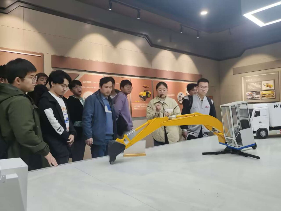 首先,参观的是智能交通与工程机械展厅,通过对筑路类机械类文物以及盾构机等一批国之重器的展示,体现了工程机械的发展演变与技术革新。参观期间,梁佳老师指出,每个工程机械背后都有机械、电子和液压等技术支撑,机械电子工程专业在工程机械领域发挥着不可替代的作用。在听取梁佳老师的介绍后,同学们更进一步了解了自身专业领域。