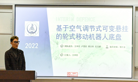 答辩正式开始,参赛的队伍依次答辩,答辩的项目有“仿袋鼠跳越与轮式复合型机器人”、“基于多楼层自主路线规划的多层建筑清扫机器人”、“小型高效螺旋桨推进器设计”、“高速公路混凝土护栏自动填缝设备”、“桥梁索夹螺栓松动智能检测与补张机器人创新设计”、“负压吸附式爬墙机器人”等28个项目。