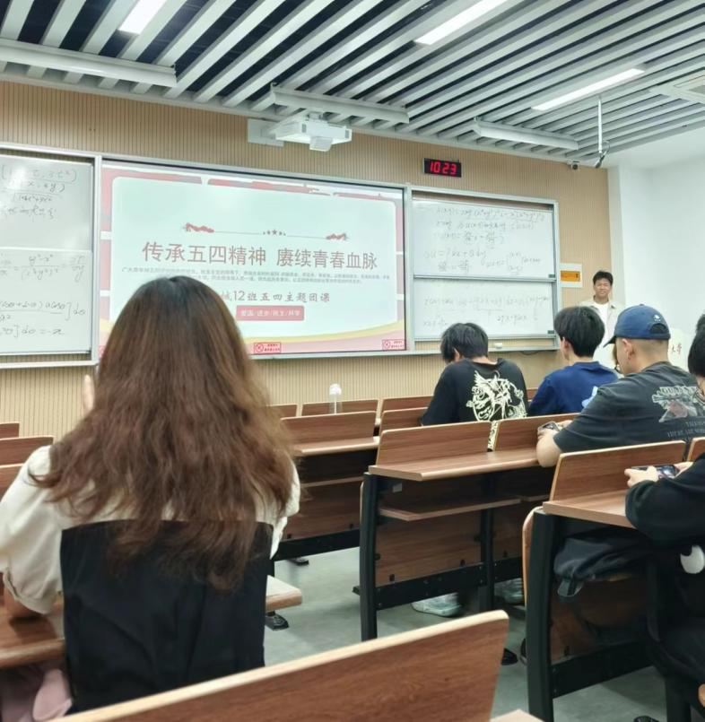 活动伊始,12班团支部书记毛梦园就五四青年节的背景及历史意义做了详细介绍,并与全体青年团员共同回顾了五四运动的光辉历程,向大家解读了五四精神的深刻内涵。