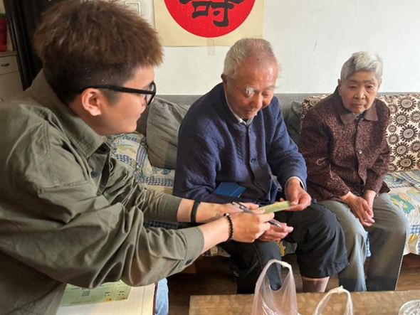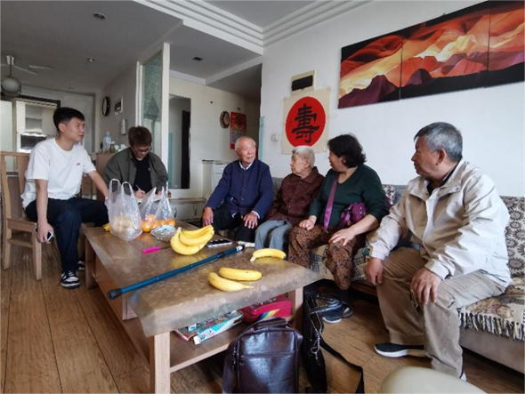 为全面贯彻落实党的二十大精神,加强支部交流,提升党建工作质量,5月10日,无限动漫 领航先锋研究生党支部(以下简称“领航先锋党支部”)与离退休处党总支退休第十二党支部(以下简称“退休第十二党支部”)开展“前行不忘耕耘者,春日慰问传真情”第六期老少帮扶共建活动。在退休第十二党支部书记闫海卿的带领下,领航先锋党支部成员张杰和田文浩一同走进方炳炎、刘德芳、孙可浚和杨贵森四位退休教师的家中,并向他们献上了90岁生日的诚挚祝福。