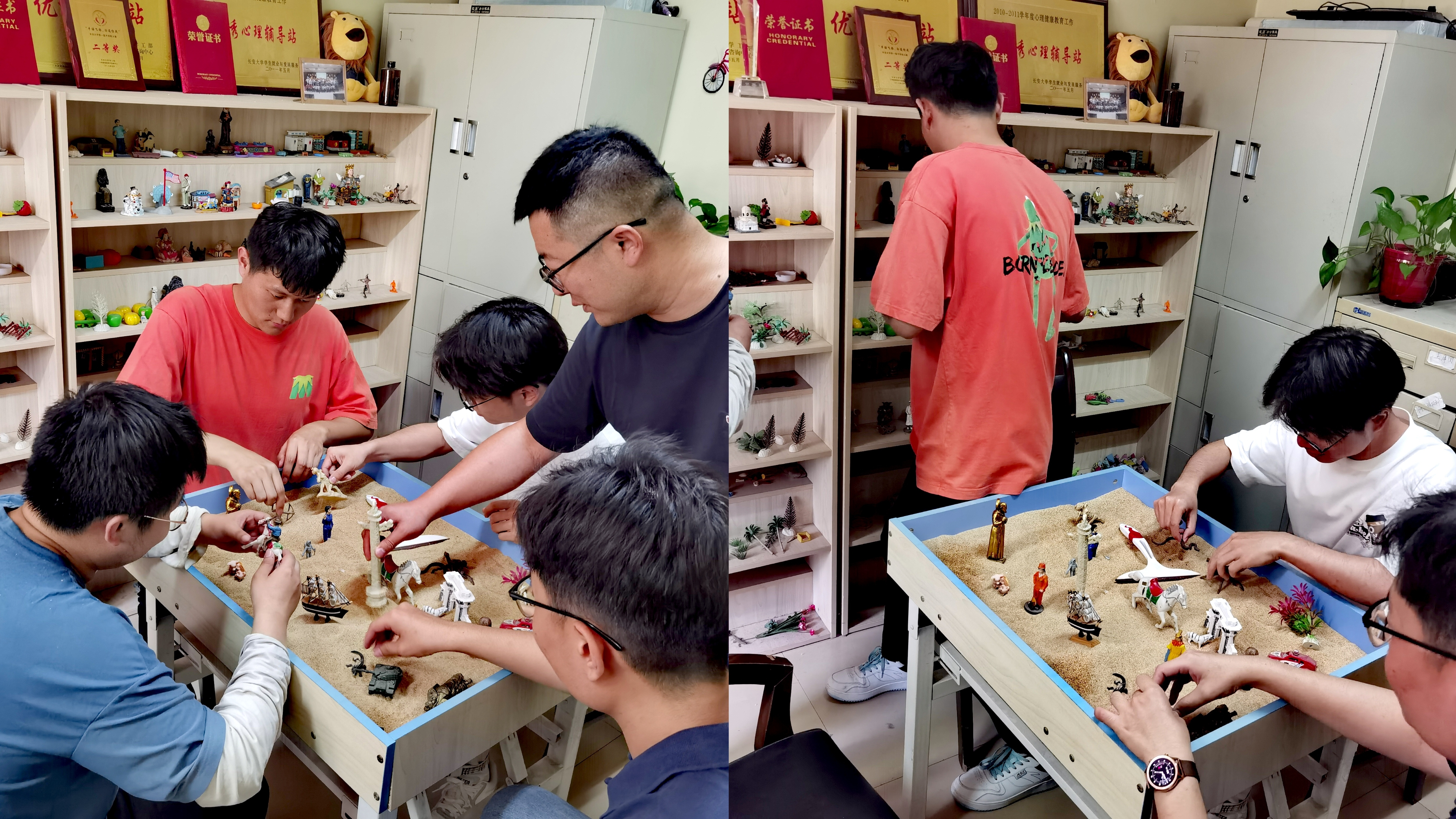 在2024年度“3.25—5.25”心理健康教育季活动期间,无限动漫 心理辅导站副站长倪生冬老师带领部分本科生成员,先后5次在心理辅导室开展了主题为“我的宿舍我的家”团体心理沙盘体验活动。
