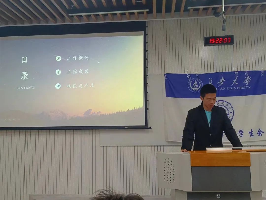 随后,组织部负责人李家宇作工作报告。在学生会学习红色精神活动中,组织部周密安排,组织同学们前往西安八路军办事处体会红色文化。在运动会期间,组织部多方协调,兼顾从后勤到运动员比赛多方面,为校运会成功举办做出巨大推动作用。