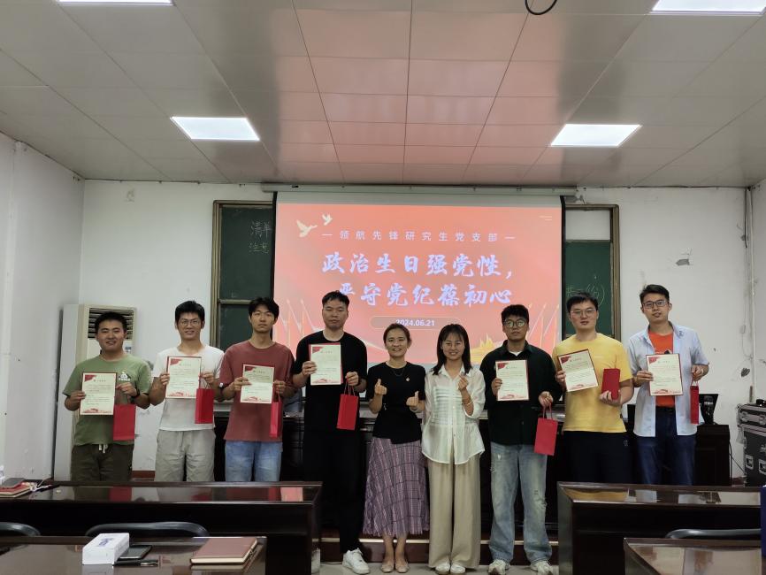 为强化党员党性观念和党员意识,引导党员时刻牢记自己的“第一身份”,增强支部党员荣誉感和归属感,6月21日,领航先锋研究生党支部于学院四楼会议室开展题为“政治生日强党性,严守党纪葆初心”的政治生日党日活动。支部全体党员参加,活动由支部组织委员王晨光主持。