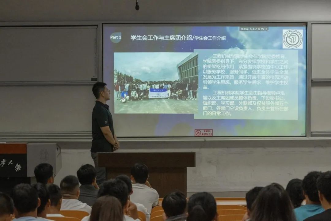 紧接着,团学工作中心、新闻宣传中心等8个团学组织与学生社团的宣讲人以饱满的热情和创新的展示方式逐一登台,通过精彩的演讲、生动的视频及互动环节,全面展现了各组织、社团的魅力和价值。他们鼓励新生们发挥自己的特长与兴趣,参与到丰富多彩的活动中,通过实践与探索,不断积累经验,为个人成长与学院发展贡献力量。