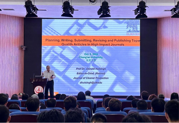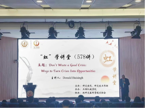 随后,Donald Huisingh教授在南校区东院伯声报告厅为我校师生作了2场题为《Don't Waste a Good Crisis: Ways to Turn Crises Into Opportunities(不要浪费一场好的危机:将危机转化为机遇)》《How to Plan, Develop, Submit, Revise, and Publish Top Quality Articles in High Impact Journals(如何规划、撰写、投稿、修改高质量论文并发表于高影响期刊)》的学术报告,并与参会师生进行了互动交流。