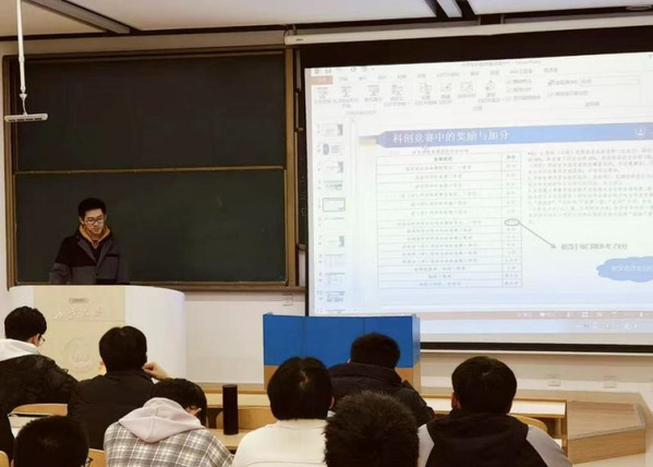 三位同学从参加科创竞赛的重要性、竞赛流程以及参赛注意事项等方面进行了详细的介绍,并结合自身的经验向同学们分享了比赛的必备技能和CAD制图建模等软件的使用方法,提醒同学们要合理安排时间,平衡好科创竞赛与专业学习,在参赛过程中保持良好心态,与团队成员进行良好的沟通与合作。