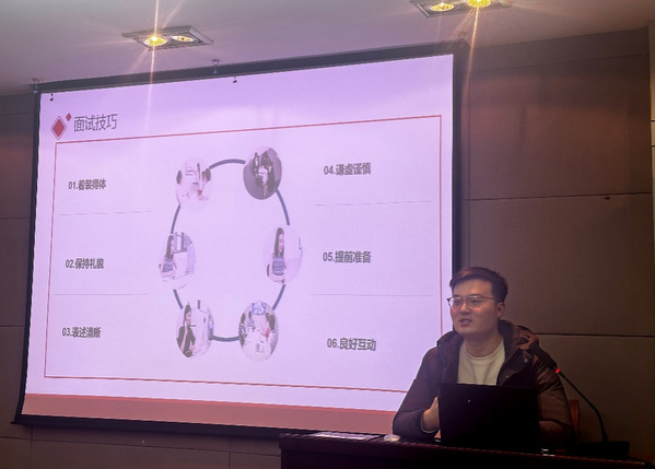 随后,赵倩补充了面试实战经验和签约细节。她提醒同学们,无论是笔试还是面试,都应提前做好详尽的准备,包括深入了解公司背景、岗位需求以及模拟回答常见问题和反复演练自我介绍。她表示,这样的准备不仅能增强自信,还能在关键时刻展现出专业与从容,给面试官留下深刻印象。在签约事宜上,她强调在正式签约前要全面了解公司的薪酬结构,包括基本工资、绩效奖金、福利待遇、试用期长短及转正条件等细节,并建议主动与公司HR沟通,确保所有条款清晰明确,避免因信息不对称而产生误会或纠纷。