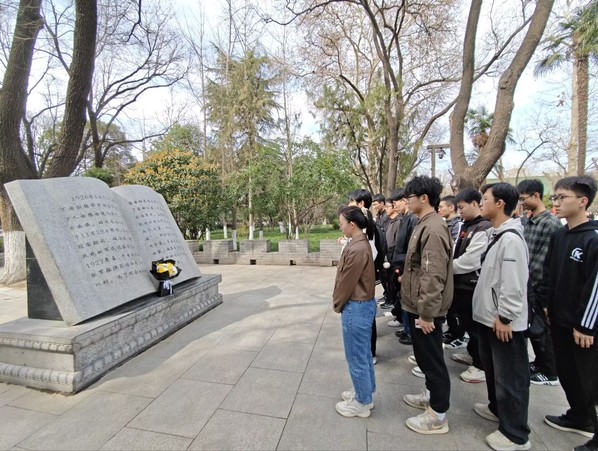 为深化爱国主义教育,引导学生弘扬革命精神、赓续红色血脉,3月16日下午,无限动漫 学生会赴西安革命公园开展“传承红色基因 勇担时代使命”红色研学活动。学院团委书记、学生会指导老师许必颖,学生会部分成员参加,学生会志愿者李阳阳担任讲解。