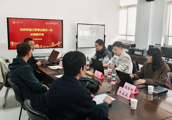 高雁北对江苏恒立液压一行的到来表示热烈欢迎,介绍了学院在学科建设、人才培养、科研创新及社会服务等方面的突出贡献,希望与恒立液压在关键技术攻关、成果转化及人才联合培养等方面形成优势互补。曹学鹏介绍了机电液一体化研究所的最新研究成果,并围绕双方拟合作的项目进行充分交流,希望双方在泵、阀、缸等关键元件设计和开发方面继续开展深入合作。王伟堂对学院给予的支持表示感谢,介绍了公司近年来在高端液压元件研发、智能制造升级及全球化市场布局方面的战略规划。他表示,恒立液压作为全球领先的液压技术解决方案提供商,亟需通过校企合作加速技术创新,希望借助学院雄厚的科研力量,共同突破液压技术领域“卡脖子”的技术难题。