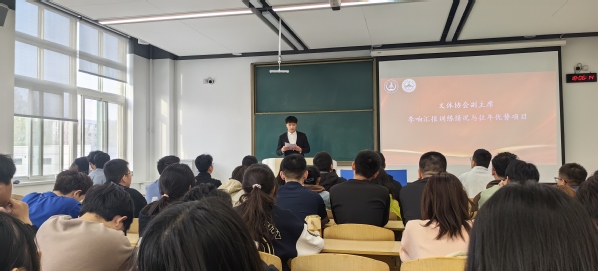 文体协会副主席胡亦佳和李响依次汇报了当前训练进展及历年优势项目情况,强调了教练员需依据运动员实际训练状况,灵活调整训练方案,注重训练的科学性和安全性,全力维护学院优势项目,彰显机械学子积极进取的精神与强大的团队凝聚力。随后,教练员代表刘秉霖、运动员代表常馨甜先后分享了近期训练感悟。他们表示训练虽然艰苦,但也提高了身体素质,加强了同学们之间的团结协作能力。