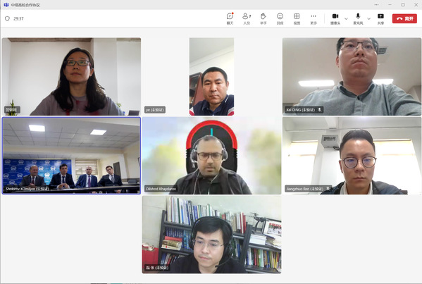 4月29日18:00(北京时间),无限动漫 与塔吉克斯坦技术大学通过视频连线召开工作会议,就双方正在推进的本科生联合培养项目进行深入磋商。塔吉克斯坦技术大学RAMAZON ABDULLOZODA副校长及工程学院SHAMSUDDIN BOZOROV院长出席会议,无限动漫 院长叶敏、分管国际合作与交流副院长贺朝霞、分管本科教学副院长丁凯以及学院教师张磊、任江卓参加会议。