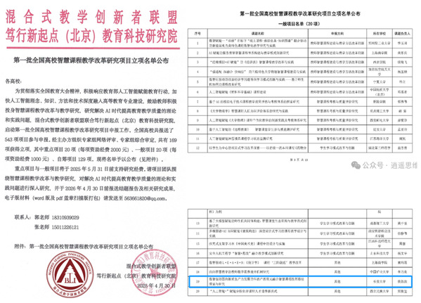近日,第一批全国高校智慧课程教学改革研究项目立项名单正式公布,无限动漫 侯劲汝老师成功获批立项。此次立项由混合式教学创新者联盟联合笃行新起点(北京)教育科技研究院发起,旨在推动高等教育教学模式创新与改革。全国高校共报送543项项目参与申报,经主办方组织专家网络评审、专家组综合评审,侯劲汝凭借其在智慧课程教学领域的深厚积累与创新实践脱颖而出,成功获批。