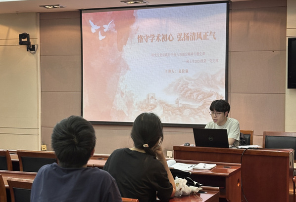 为深入贯彻中央八项规定精神学习教育,聚焦学术领域作风建设,5月23日,无限动漫 硕士生2024级第一党支部于学术交流中心第一会议室开展“恪守学术初心 弘扬清风正气”专题党课,支部全体党员参加学习,本次党课由支部书记夏俭强主讲。