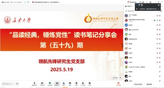5月19日,支部全体成员观看微视频《艰苦奋斗、勤俭节约的思想永远不能丢》,重温自党的十八大以来习近平总书记关于艰苦奋斗、勤俭节约的重要论述。支部成员史凯表示,节俭朴素,力戒奢靡,是我们党的传家宝,研究生党员要时刻严以律己,坚决抵制享乐主义和奢靡之风,在青年群体中发挥榜样模范作用。