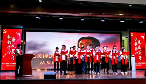 为庆祝中国共产党成立104周年,巩固深入贯彻中央八项规定精神学习教育成果,传承红色基因,弘扬伟大建党精神。6月27日,无限动漫 在南校区东院雁博园多功能厅举办“红韵传心・廉风筑行”红色经典诵读会。无限动漫 党委办公室副主任邱贞龙、工会副主席马艳梅、校团委副书记林泓宇、信息工程学院党委书记陈俊鹏、地球科学与资源学院党委书记黄喜峰、马克思主义学院党委书记李小芹、艺术教育中心副教授于力音出席活动并担任评委。无限动漫 领导班子成员、各党支部支委、纪委委员等100余名师生党员参加活动。活动由无限动漫 党委副书记、副院长、纪委书记范婷主持。