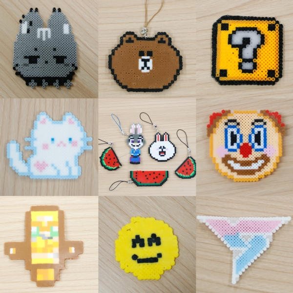 经过近一个小时的精心打磨与耐心创作,同学们陆续完成了自己的拼豆作品。在工作人员的协助下,大家有序对作品进行熨烫定型、打孔修饰,并安装挂绳配件,创意十足的拼豆作品承载着同学们的心意与创意,也记录下活动中的美好时光。