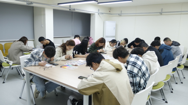 创作环节中,同学们热情高涨、兴致盎然,充分发挥想象力与动手能力,沉浸在拼豆创作的乐趣之中。有的同学参照精美图纸,凝神专注、细致拼接,可爱灵动的图案在指尖逐渐成型;有的同学大胆创新、自主构思,用色彩斑斓的拼豆,打造出兼具个性与创意的专属作品,将心中的美好与期许融入每一颗小小的拼豆之中。现场氛围轻松融洽、暖意融融,老师们与同学们一同动手、亲切交流,在指尖的协作中拉近了师生距离,暖意与温情在彼此心间传递。