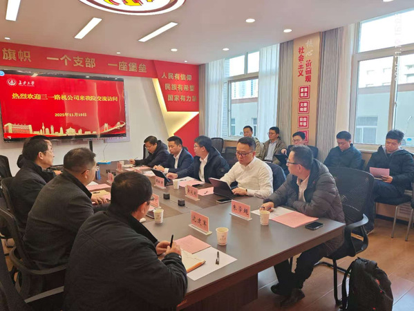 高雁北致欢迎词,叶敏介绍了学院学科优势、科研平台及人才培养特色,表达了深化校企产学研合作的意愿。谭松涛介绍了三一路机在路面机械领域的行业布局与发展愿景,结合企业技术需求,重点围绕智能摊铺压实、沥青搅拌设备优化、核心部件研发等方向进行了阐述。双方聚焦技术攻关、人才联合培养、科研成果转化等核心议题深入研讨,针对压路机、摊铺机等关键设备的智能化升级、现场检测技术优化等具体方向达成合作共识,约定组建专项对接团队推进后续合作。